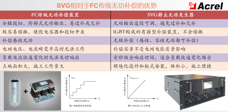 Es gibt viele Arten von Ausgleichsgeräten, und die Wahl basiert im Allgemeinen auf der tatsächlichen Betriebsausrüstung am Standort. Jedes Kompensationsgerät hat seine Vor - und Nachteile. In diesem Artikel werden wir kurz zwei Produkte vorstellen, die am häufigsten im 0,4 - KV-Verteilungsnetz auf dem Markt verwendet werden: Schaltkondensatorkompensation (FC-Kompensation) und statischer Vargenerator (SVG-Kompensation).