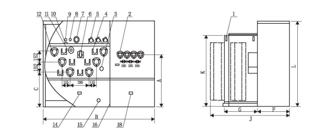 ☆ Der Tap-Wechler hat drei oder fünf Gänge, markiert mit A, B, C, D und und, und der Tap-Out - Bereich beträgt 10kV ± 5% oder 10kV ± 2 * 2. 5 Prozent.
