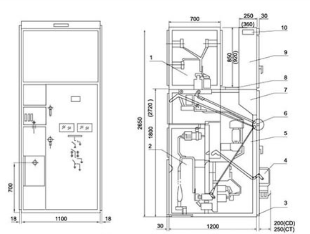 Das Schrank ist eine eingeschlossene gepanzerte Struktur aus Metall, das Schrankskeleton wird durch Winkelstahl geschweißt, und das Schrank ist in einen Schaltschalterraum, einen Busbarraum, einen Kabelraum und einen Relaisraum unterteilt, und der Betrieb der Hauptkomponenten im Schrank kann durch das Beobachtungsfenster und die Beleuchtung an der Fassade beobachtet werden. Um die technische Leistung der Schaltgeräte zu verbessern, müssen die wichtigsten Komponenten (z. B. Schaltschalter, Drehschaltschalter usw.) wurden neu gestaltet.