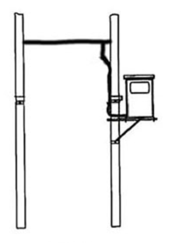 Die Ausrüstung wird im Freien zwischen zwei Drahtposten installiert, wie in (Abbildung 2) gezeigt.