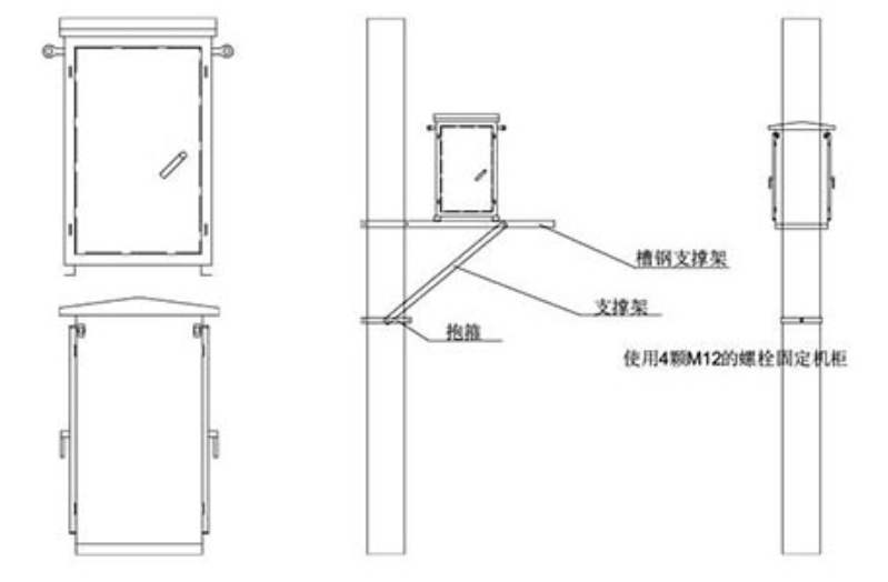Die Ausrüstung wird im Allgemeinen zwischen Außendienstmasten installiert, um die Bequemlichkeit und Sicherheit der Installation zu gewährleisten, wird der Abstand zwischen dem oberen Draht und der Unterseite der Ausrüstung zwischen dem Kanal installiert, um einen Abstand von 1200 mm zu gewährleisten, und die Installation wird zuerst mit einem speziellen verwendet
